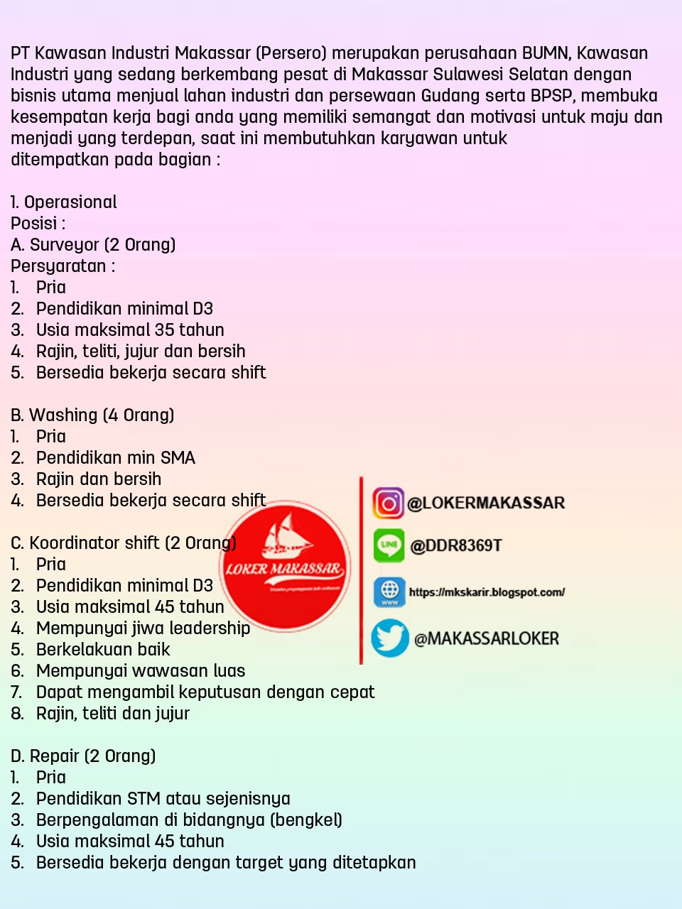 Info Loker Makassar å¸å Facebook from lookaside.fbsbx.com Pt djarum dan astra group resmi menjalin kerjasama dengan menanamkan sahamnya pada perusahaan angkutan online yang bernama go jek. Update loker di parepare bulan ini untuk anda yang membutuhkan info lowongan pekerjaan terkini untuk wilayah parepare. Pt djarum sudah berkembang denga cepat dari awalnya yg sederhana pada tahun 1950 an. Info alamat lokasi gaji karyawan loker lowongan kerja rekrutmen karir perusahaan rokok pt djarum kudus indonesia terbaru lulusan sma smk d3 s1 semua jurusan. Siap ditempatkan di parepare / kendari jenis pekerjaan: Saat ini perusahaan ini membuka lowongan kerja dengan posisi sebagai berikut Sejarah djarum berawal saat oei wie gwan membeli usaha kecil dalam bidang kretek bernama. Pt.djarum indonesia tbk cari di antara 17.600+ lowongan kerja terbaru di indonesia dan di luar negeri gaji yang layak pekerjaan.penerimaan calon karyawan baru garuda indonesia untuk semua posisi 2019 garuda indonesia (pt garuda indonesia (persero) tbk;